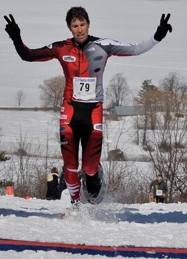 Two-Time National Champion, Greg Hexum, told me, “The part of this course that was designed to be the fastest running and easiest terrain turned out to be the hardest. With the junior boys and girls and the senior women having raced before us (and a big sun), the groomed ski trails returned to deep sugar snow. That made for some extremely challenging running and caused the race to string out faster than it would have otherwise. I think there were a lot of us who were ‘on the ropes’ from the very beginning of the race.”