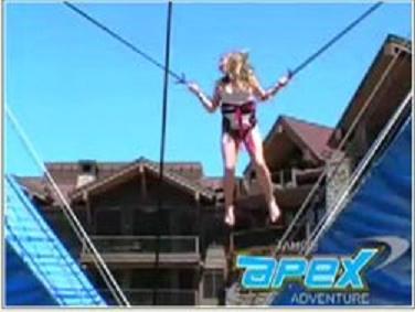Take out those blades, go out, and ice skate a salchow with a few camels, too. Try the Biathlon, you see it on television, seems easy enough, right? Take the family on a geocaching afternoon or my favorite, the APEX bungy trampoline (open year round, photo). Yes, you have to take off the snowshoes first for that one . . . .
