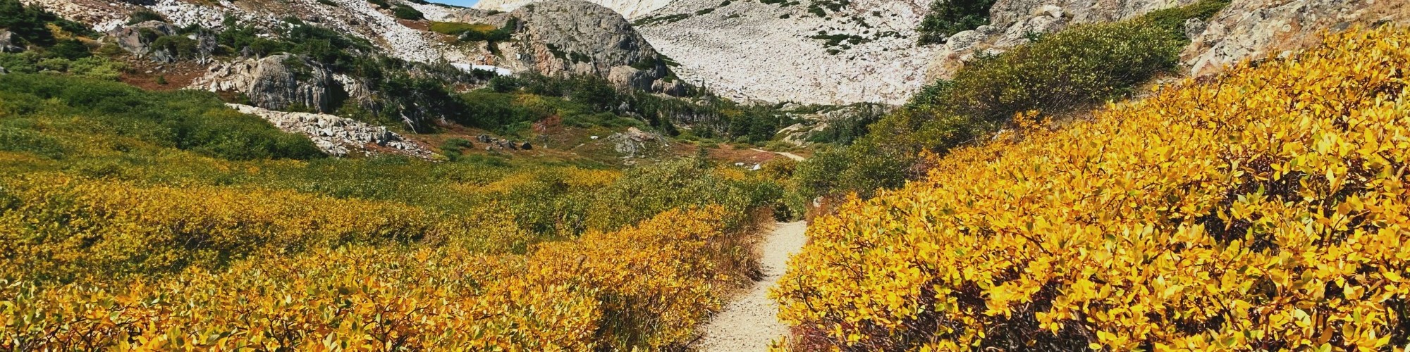 A singletrack trail in the Rocky Mountains flanked by fall colors will soon be covered by snow. Make the most of this fall and scout them out now to stay safe this winter. Photo: David Young