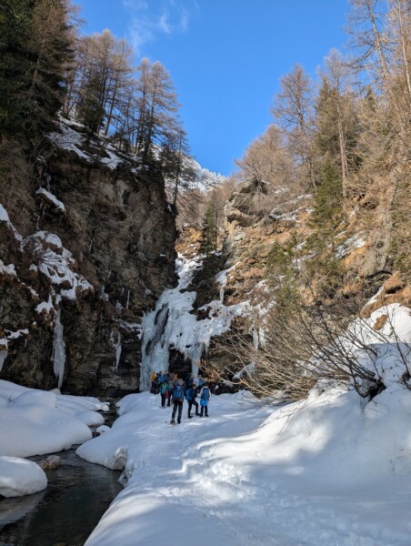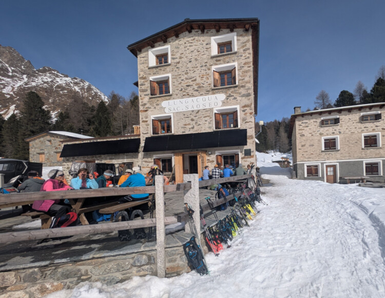 Thursday took us in a new direction from Poschiavo—this time by bus. We disembarked at Sfazù (1,643 m) and hiked through meadows and forests, climbing about 400 meters before crossing the frozen Lagh da Saoseo, where we stopped for a picnic lunch.
