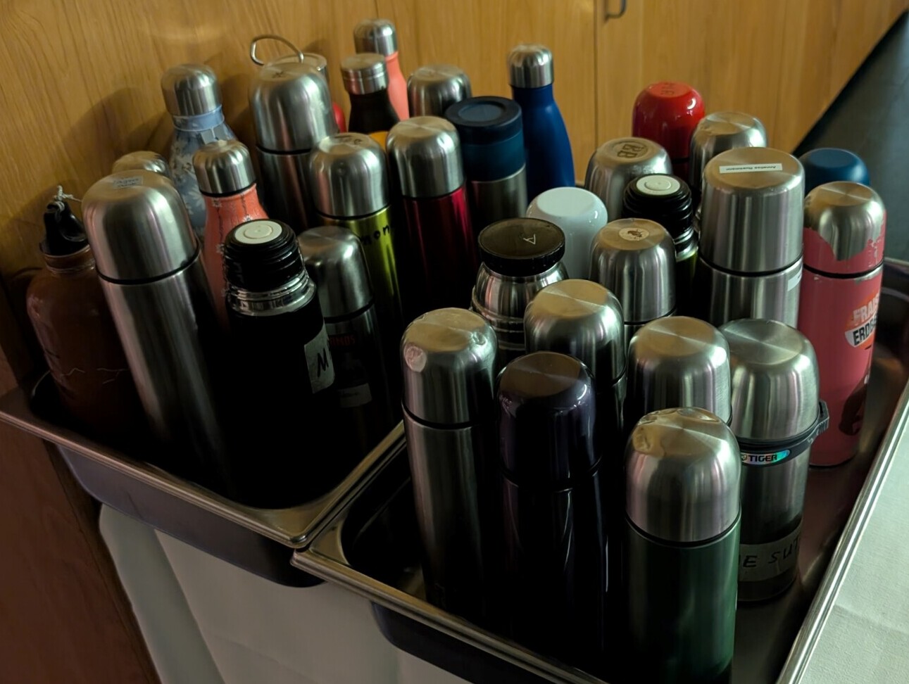 Thermoses filled overnight with Marschtee, a traditional hiking tea. Photo: Paul G. Schreier