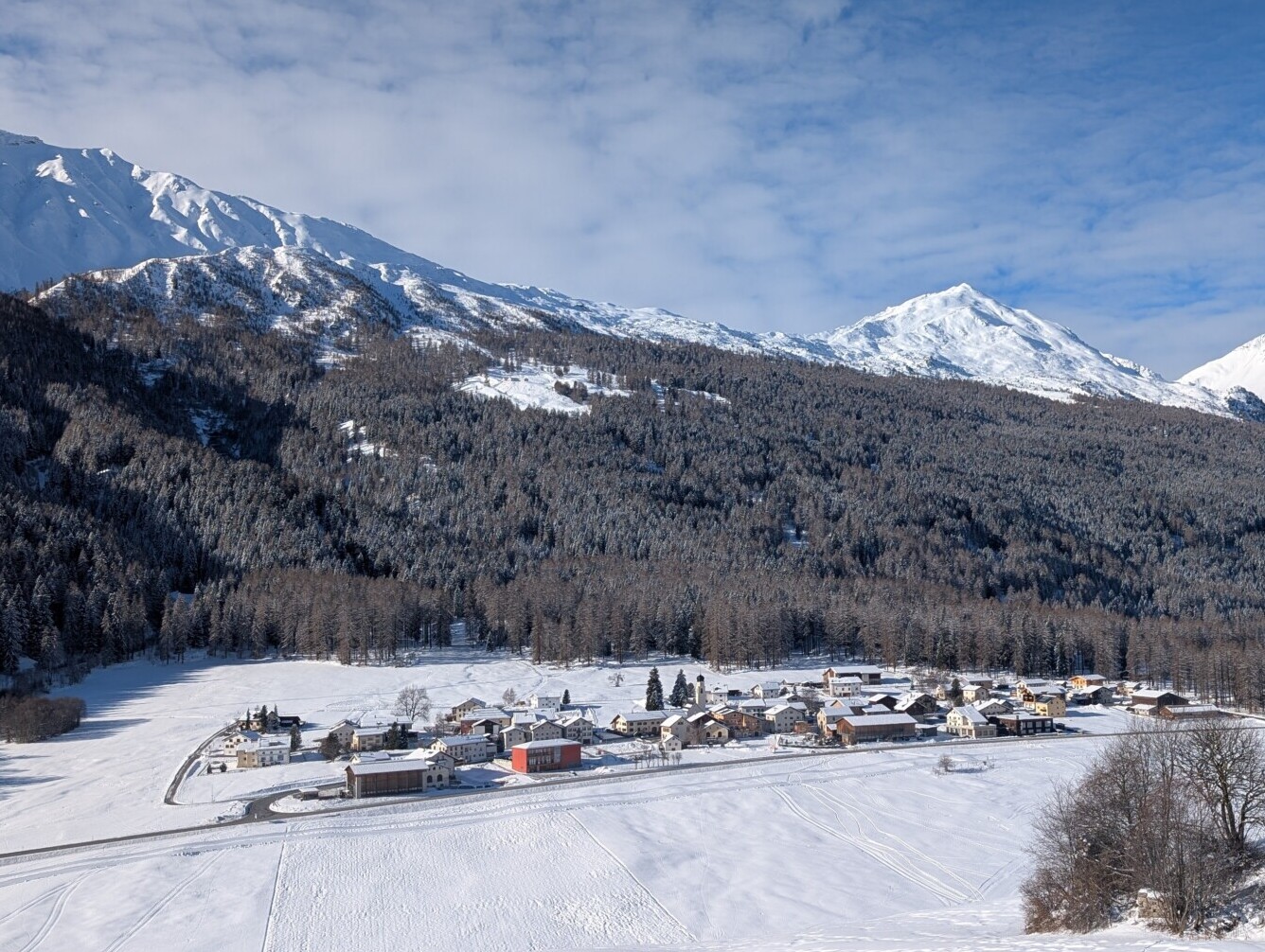 Our first trip took us to Val Müstair, where we stayed in the village of Fuldera (1,638 m). Snow covered the valley, with even deeper conditions in the surrounding mountains. The region was recently designated a UNESCO Biosphere—recognition of its natural beauty and rich biodiversity.