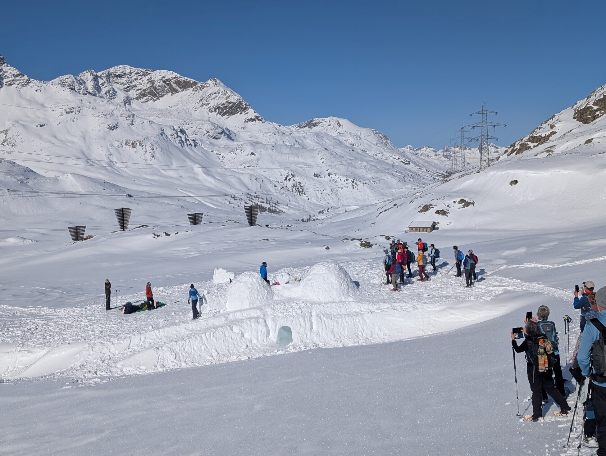 Near Ospizio Bernina, snow conditions were ideal—even enough for building an igloo. Photo: Paul G. Schreier.